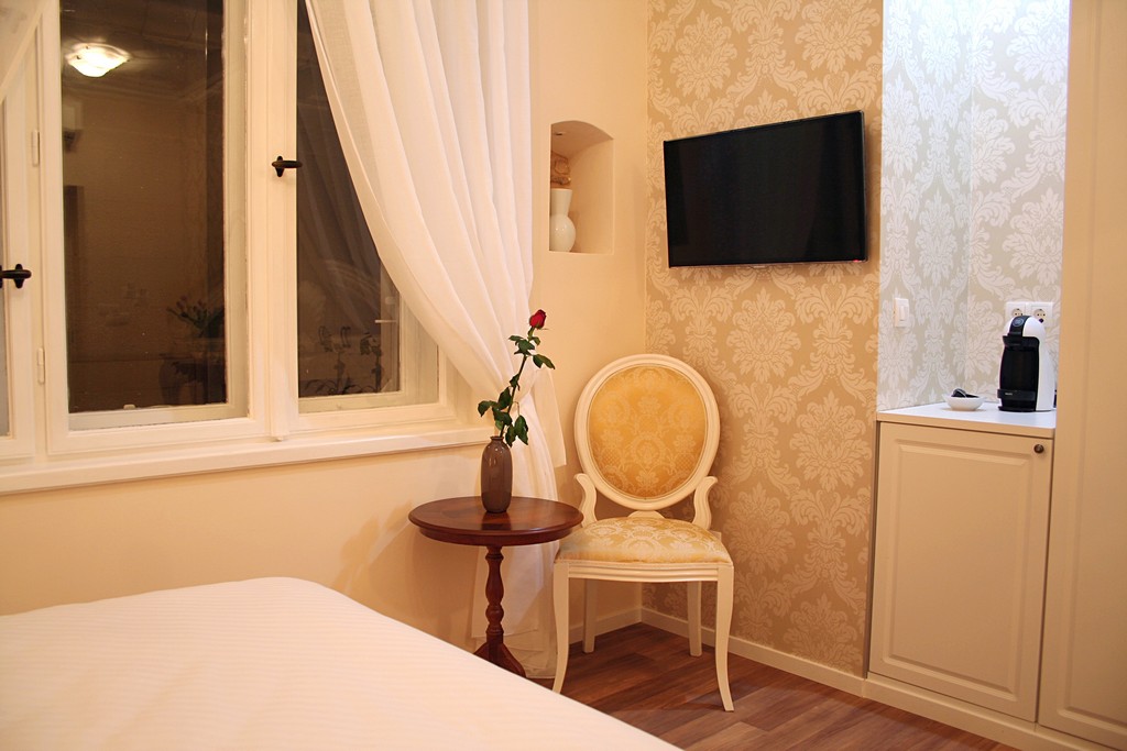 Just like our other rooms and apartments, room is equipped with LED Smart TV (Full HD, Internet), mini-bar and a coffee machine of your choice (Dolce Gusto or filter coffee)